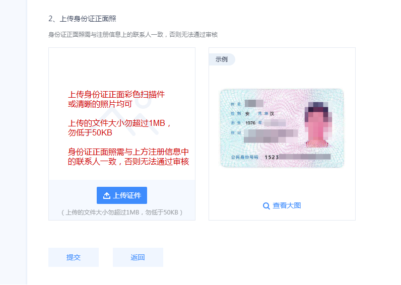 隻需要上傳身(shēn)份證正面照(zhào)即可(kě)。