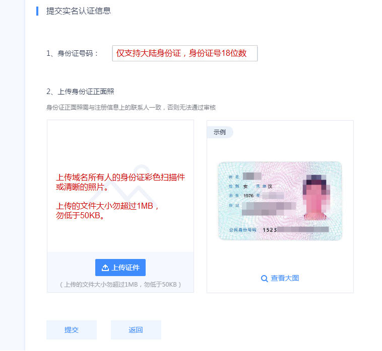 5.由于域名實名認證通過後,無法查看(kàn)到實名認證裡(lǐ)面提交的如(rú)證件(jiàn)号碼、證件(jiàn)類型等信息,
