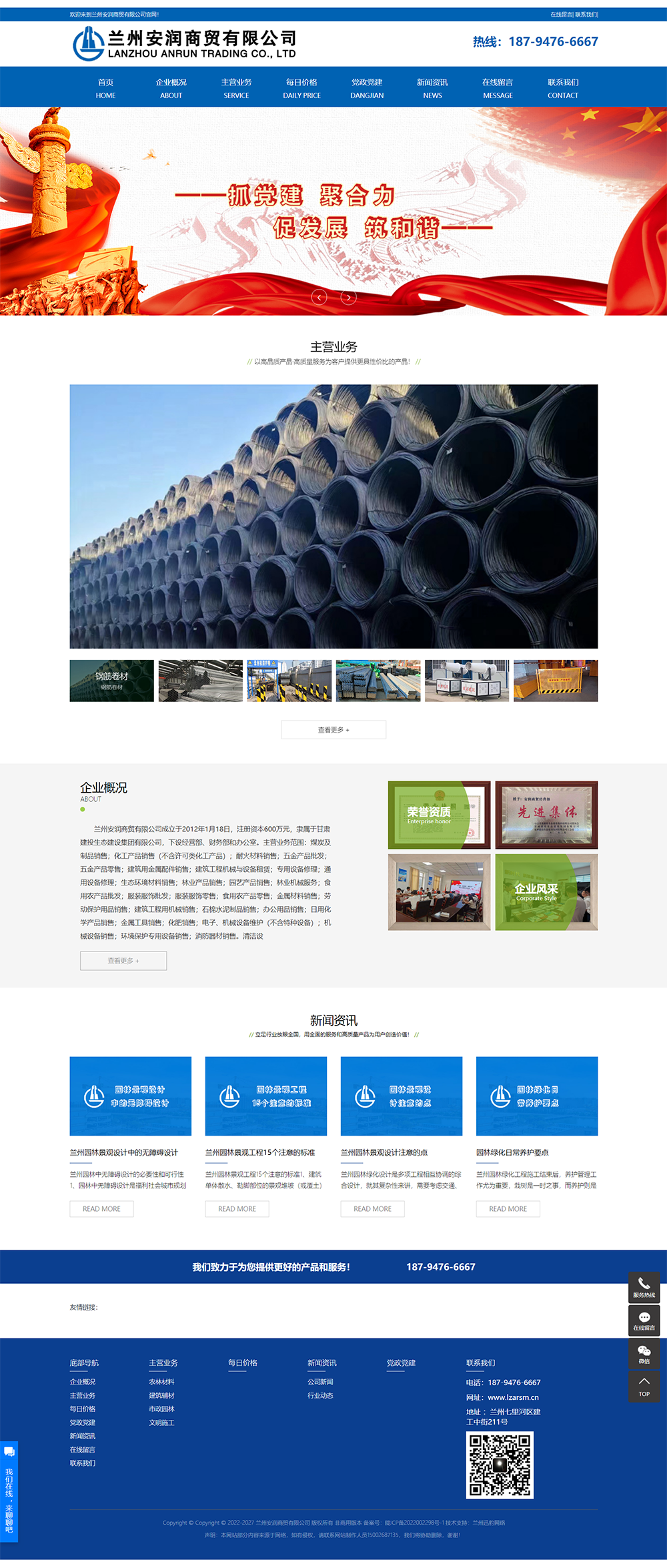蘭州安潤商貿有限公司成立于2012年(nián)1月18日(rì),注冊資本600萬元,隸屬于甘肅建投生(shēng)态建設集團有限公司,下設經營部、财務部和辦公室。