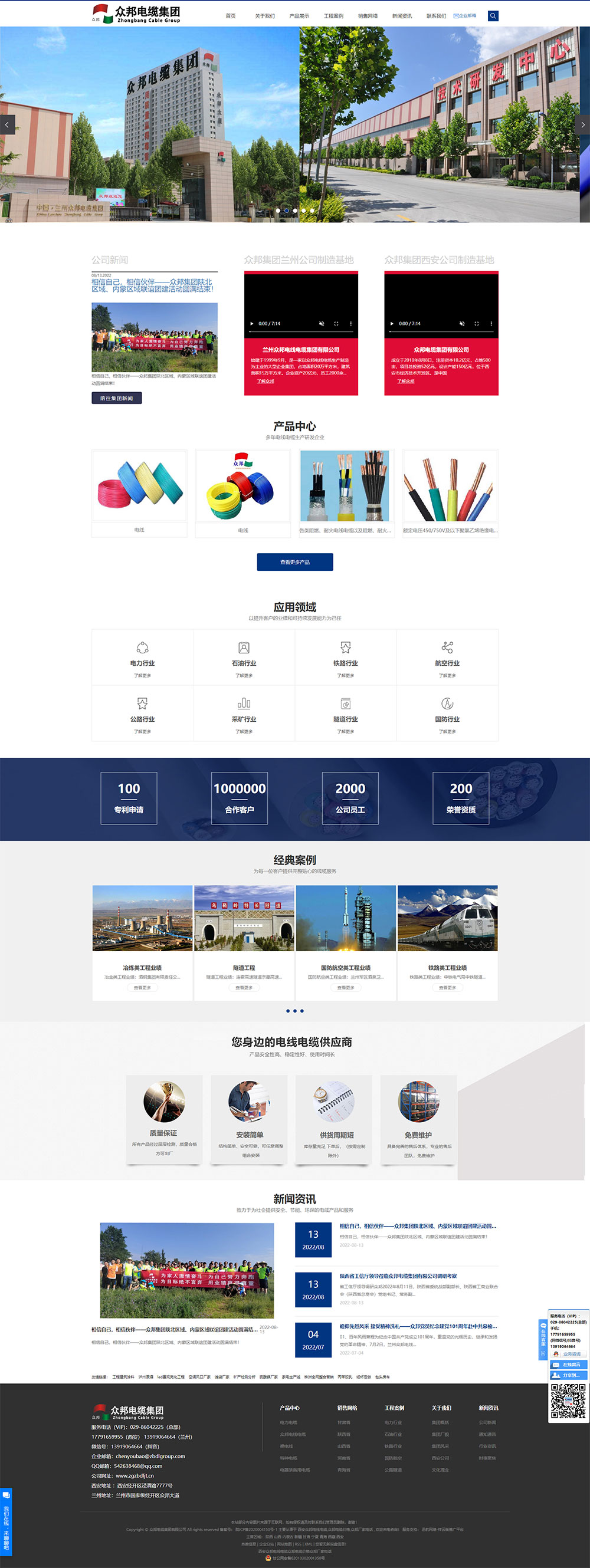 衆邦電纜集團擁有蘭州、西安兩大(dà)生(shēng)産制造基地。是國(guó)家高新技術(shù)企業,全國(guó)守合同重信用企業,中國(guó)電線電纜行業智能化效率高、産能大(dà)、品種全的企業。衆邦(西安)電纜集團,位于***(西安)經濟技術(shù)開發區泾渭路(lù),衆邦(蘭州)電纜集團,位于***(蘭州)經濟技術(shù)開發區衆邦大(dà)道;衆邦國(guó)貿集團,位于蘭州市安甯區萬新南(nán)路(lù)。