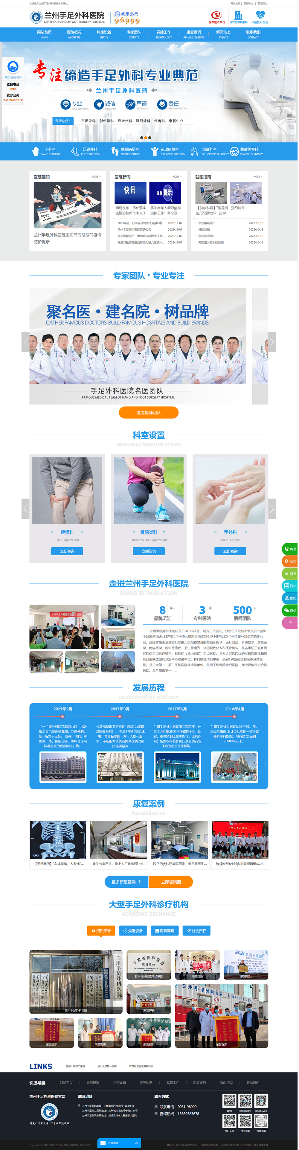 蘭州手足外科(kē)醫院成立于2014年(nián)4月,現有三個院區,分(fēn)别位于蘭州市城(chéng)關區北濱河中路(lù)濱河麗舍1187号和蘭州市七裡(lǐ)河區南(nán)濱河中路(lù)845号以及蘭州手足外科(kē)醫院臨洮分(fēn)院。是經蘭州市衛健委批準按二級規模建設的集臨床醫學、醫療救治、科(kē)研教學、康複醫學、疼痛醫學、新中醫診療、衛生(shēng)健康爲一體(tǐ)的現代化專科(kē)醫療機(jī)構。